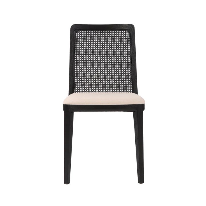 CANE DINING CHAIR – OYSTER LINEN/BLACK FRAME