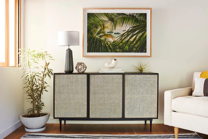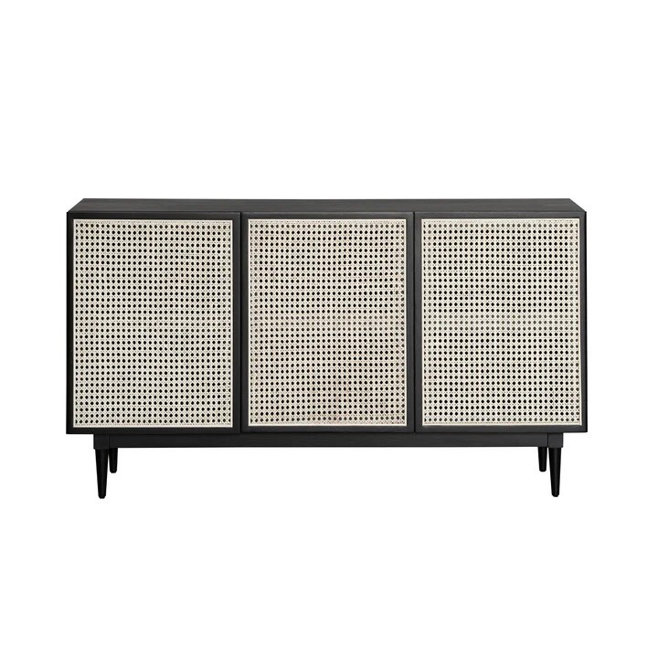 The Cane Sideboard elegantly combines traditional craftsmanship with modern functionality, featuring a sleek design adorned with intricate cane detailing. Perfect for storing dining essentials while adding a touch of sophistication to any space