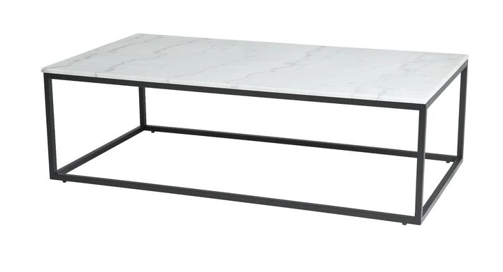 VERONA COFFEE TABLE – WHITE MARBLE TOP/ MATTE BLACK BASE